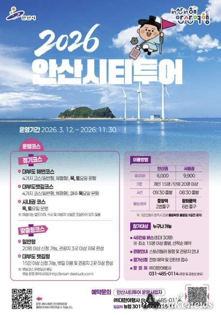 이민근 안산시장은 “2026 안산시티투어는 시화호 뱃길 개통과 함께 안산의 다양한 관광 자원을 연결하는 핵심 관광 콘텐츠가 될 것”이라며 “시민과 관광객 모두가 안산의 매력을 편안하게 즐길 수 있도록 관광 활성화에 힘쓰겠다”고 말했다.