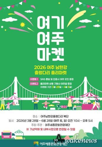 어웨이크뉴스 오경하 기자 | 여주세종문화관광재단은 오는 3월 28일부터 6월 28일까지, 여주 남한강 출렁다리 북단 일원에서 플리마켓 ‘여기 여주 마켓’을 진행한다고 밝혔다.