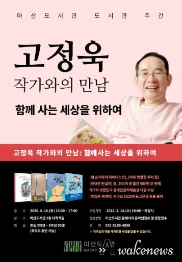 어웨이크뉴스 오경하 기자 | 김포시 마산도서관은 도서관 주간(4월 12일~18일)을 맞아 오는 4월 18일 오후 3시 ‘고정욱 작가와의 만남: 함께 사는 세상을 위하여’를 개최한다고 밝혔다.