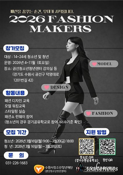 어웨이크뉴스 오경하 기자 | 수원시청소년청년재단 권선청소년청년센터는 패션 분야 진로에 관심 있는 청소년과 청년을 대상으로 ‘패션메이커스(Fashion Makers)’ 프로그램 참가자를 모집한다.