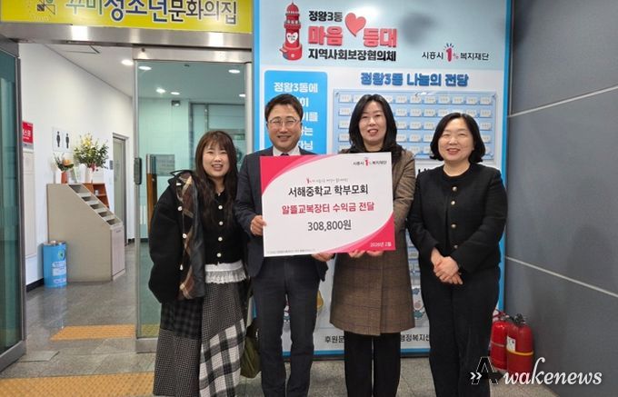 어웨이크뉴스 오경하 기자 | 서해중학교 학부모회는 지난 3월 13일 정왕3동 저소득층을 돕기 위해 ‘알뜰 교복 장터’ 운영 수익금 30만8천800원을 기탁하며 지역사회에 온정을 전했다.