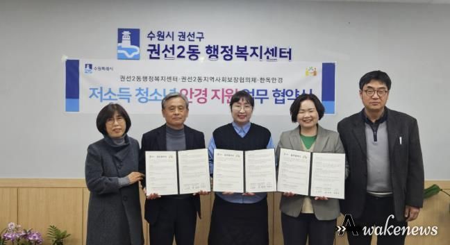 어웨이크뉴스 오경하 기자 | 수원시 권선구 권선2동은 지난 13일 권선2동 지역사회보장협의체, 한독안경과 ‘저소득 청소년 안경 지원사업’ 업무협약을 체결했다고 밝혔다.