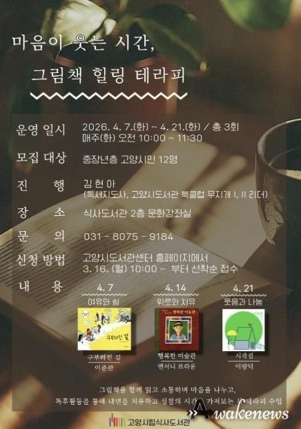 어웨이크뉴스 오경하 기자 | 고양특례시 식사도서관은 오는 4월 7일부터 공공도서관 독서문화 프로그램 ‘마음이 웃는 시간, 그림책 힐링 테라피’을 운영한다.