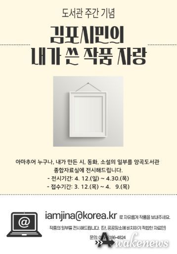 어웨이크뉴스 오경하 기자 | 김포시 양곡도서관이 4월 12일부터 4월 30일까지 시민들의 창작 작품을 소개하는 전시회 ‘김포시민의 내가 쓴 작품자랑’을 운영한다.