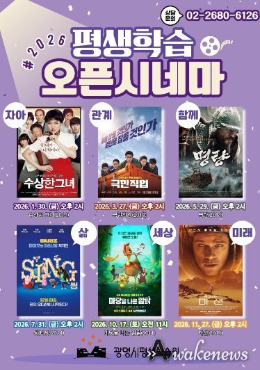 어웨이크뉴스 오경하 기자 | 광명시 평생학습원은 시민들이 영화로 삶을 성찰하고 배움의 가치를 나눌 수 있도록 2026년 ‘평생학습 오픈시네마’를 운영한다고 17일 밝혔다.