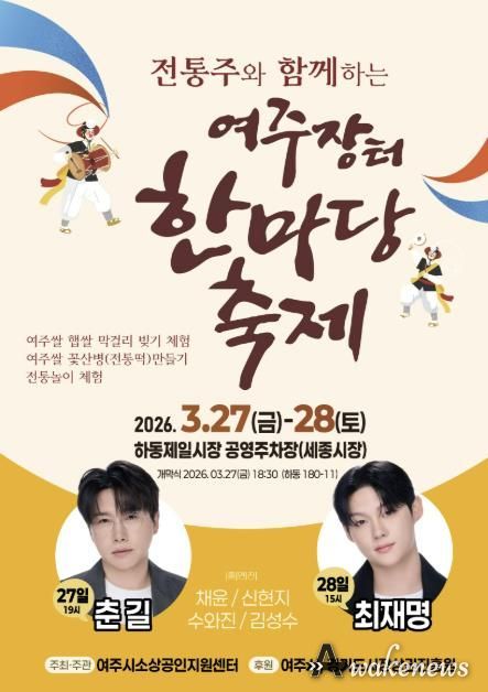[20260318100439-57476]어웨이크뉴스 오경하 기자 | 여주시는 여주시소상공인지원센터 주최⸱주관으로 지역 전통주 문화를 알리고 지역 상권에 활력을 불어넣기 위한 ‘전통주와 함께하는 '여주장터 한마당 축제'’를 개최한다고 밝혔다.
