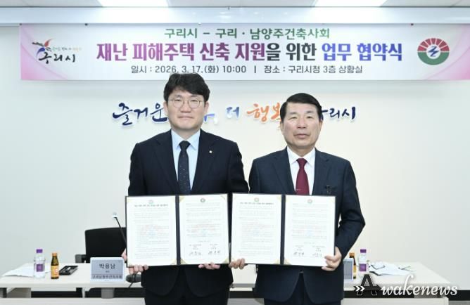 어웨이크뉴스 오경하 기자 | 구리시는 지난 17일 구리·남양주건축사회와 재난 피해 주민의 신속한 주거 안정을 지원하기 위한 '재난 피해 주택 신축지원 업무협약'을 체결했다.