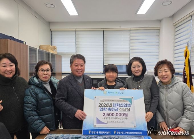 어웨이크뉴스 오경하 기자 | 광명시 광명7동 지역사회보장협의체는 18일 새학기를 맞아 광명7동 행정복지센터에서 저소득 가정 대학 신입생을 위한 ‘대학 신입생 입학축하금 전달식’을 가졌다.