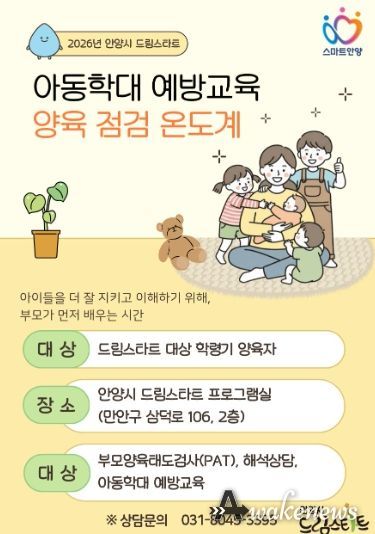 어웨이크뉴스 오경하 기자 | 안양시가 아동 학대를 사전에 차단하고 건강한 양육 환경을 조성하기 위해 맞춤형 부모 교육 프로그램인 ‘2026 드림스타트 양육 점검 온도계’를 본격 가동한다고 18일 밝혔다.
