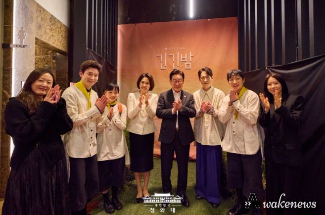어웨이크뉴스 오경하 기자 | 이재명 대통령과 김혜경 여사는 오늘 저녁 서울 대학로 링크아트센터드림에서 창작뮤지컬 '긴긴밤'을 관람하고, 출연진과 제작진을 격려했다.