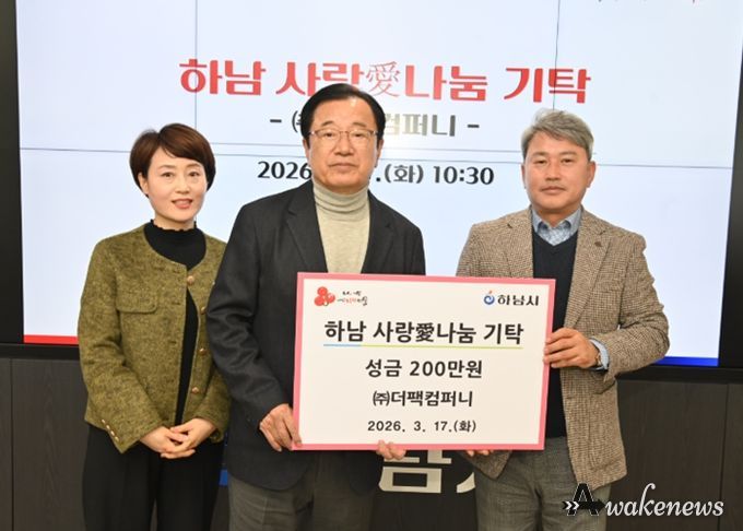 어웨이크뉴스 오경하 기자 | 지난 17일, 하남시에 소재한 ㈜더팩컴퍼니는 지역사회 취약계층을 지원하기 위해 성금 200만원을 하남시에 기탁했다.