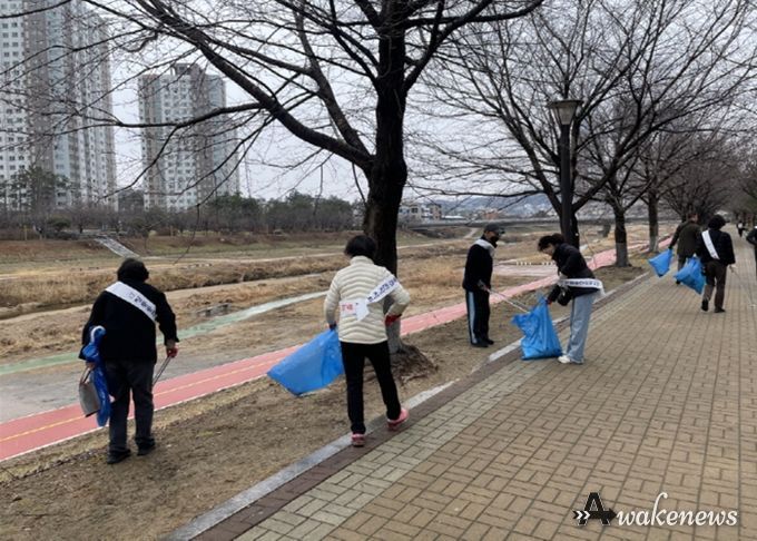 이번 활동에는 주민자치회 위원과 자원봉사자 등 20여 명이 참여해 관내 주요 도로와 골목길, 공원 및 하천 주변을 중심으로 겨우내 쌓인 쓰레기와 불법투기 폐기물을 집중 수거했다.