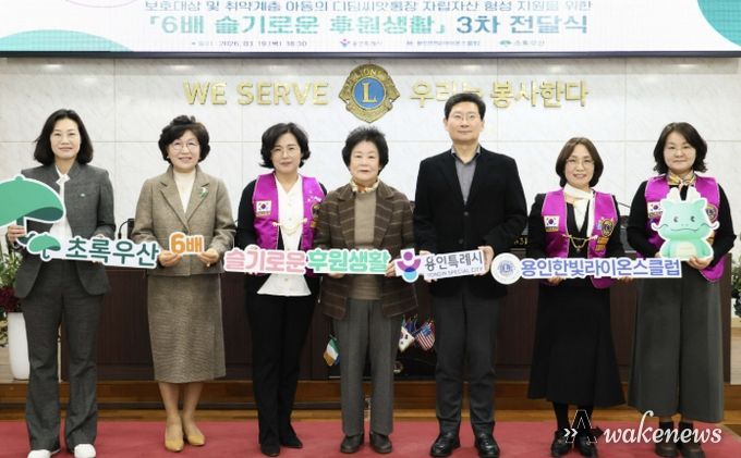 어웨이크뉴스 오경하 기자 | 용인특례시는 19일 오후 용인라이온스회관 3층에서 초록우산 어린이재단 경기1지역본부와 용인한빛라이온스클럽과 함께 ‘용인시 6배 슬기로운 후원생활’ 캠페인 3차 전달식을 열었다고 20일 밝혔다.