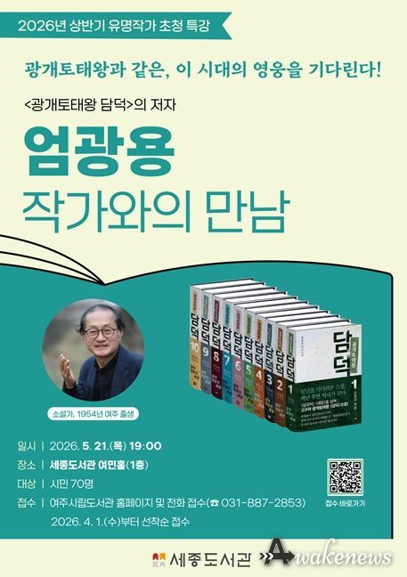 어웨이크뉴스 오경하 기자 | 여주시는 오는 5월 21일 오후 7시 세종도서관에서 대하소설 '광개토태왕 담덕'의 저자, 엄광용 작가를 초청하여 작품과 작가의 세계관에 대해 시민들과 이야기하는 ‘엄광용 작가와의 만남’을 운영한다.
