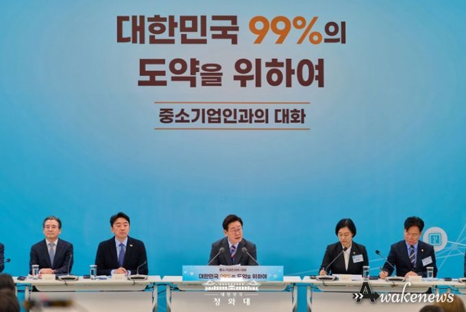 어웨이크뉴스 오경하 기자 | 중소벤처기업부, 고용노동부, 공정`거래위원회는 20일 청와대 영빈관에서 관계부처와 중소기업 대표 및 임직원, 전문가 등 170여명이 참석한 가운데 열린 ‘중소기업인과의 대화’에서 ‘혁신·지방·공정 관점의 중소기업 정책 방향’을 발표했다.