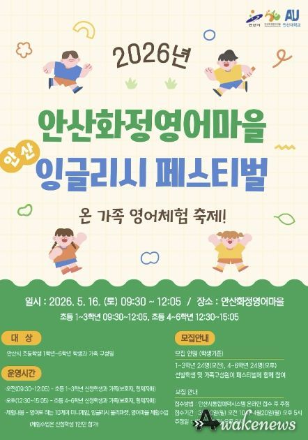 어웨이크뉴스 오경하 기자 | 안산시가 설립하고 안산대학교가 운영하는 안산화정영어마을은 ‘온 가족 영어체험 축제!’를 주제로 ‘안산 잉글리시 페스티벌’을 운영한다고 24일 밝혔다.