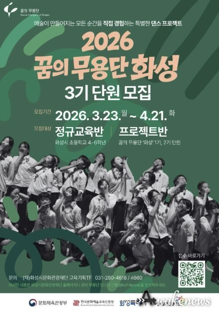 어웨이크뉴스 오경하 기자 | (재)화성시문화관광재단은 지역 내 아동·청소년의 문화예술 향유를 위한 예술교육 프로그램 ‘2026 꿈의 무용단 화성’의 단원을 오는 3월 23일부터 4월 21일까지 모집한다고 밝혔다.