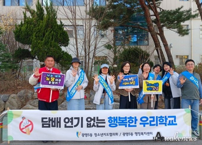 어웨이크뉴스 오경하 기자 | 광명시 광명5동 청소년지도협의회는 지난 23일 광남중학교 정문 일대에서 청소년들의 건강한 성장을 돕기 위한 ‘청소년 금연 캠페인’을 실시했다.
