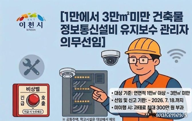 어웨이크뉴스 오경하 기자 | 이천시는 관내 일정 규모 이상의 건축물 소유자 및 관리주체를 대상으로 ‘정보통신설비 유지보수·관리자 선임 및 신고’를 철저히 이행해 줄 것을 당부했다.