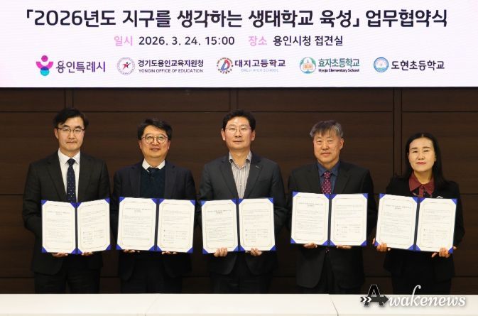 어웨이크뉴스 오경하 기자 | 용인특례시는 24일 시청 접견실에서 용인교육지원청을 비롯해 3개 학교와 ‘지구를 생각하는 생태학교 육성사업’을 위한 협약을 맺었다.