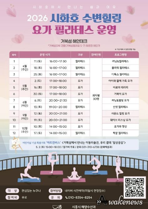 어웨이크뉴스 오경하 기자 | 시흥시는 시화호 수변의 자연경관을 활용해 시민들에게 일상의 여유와 휴식을 제공하는 ‘시화호 수변 힐링 프로그램’을 오는 4월 11일부터 10월 17일까지 운영한다.