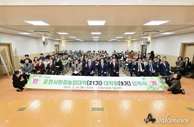 어웨이크뉴스 오경하 기자 | 포천시는 지난 24일 포천시농업기술센터 대강당에서 신입생과 내빈 등 100여 명이 참석한 가운데 ‘2026학년도 포천시환경농업대학(22기) 및 대학원(9기) 입학식’을 개최했다.