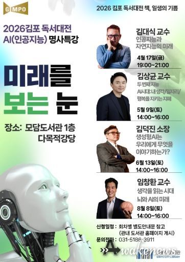 어웨이크뉴스 오경하 기자 | 김포시는 ‘2026 김포 독서대전’의 일환으로 '미래를 보는 눈: 인공지능(AI) 명사 특강'을 오는 4월 17일부터 8월 8일까지 모담도서관에서 4회차로 운영한다.