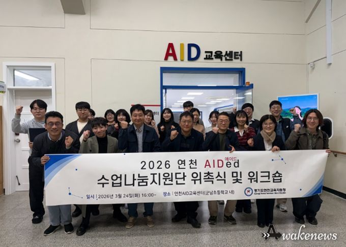 어웨이크뉴스 오경하 기자 | 경기도연천교육지원청은 지난 3월 24일 연천 AID교육센터에서 관내 초·중·고 교원 26명으로 구성된 ‘2026 연천 에이드(AIDed) 수업나눔지원단’의 제1차 학습공동체 및 위촉식을 개최했다. 이번 지원단 운영은 경기도교육청의 핵심 사업인 ‘하이러닝’ 플랫폼 활성화와 ‘AI 서·논술형 평가’의 현장 안착을 지원하기 위해 마련됐다.
