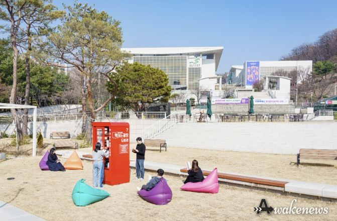 어웨이크뉴스 오경하 기자 | 성남아트센터 광장 앞 잔디밭에 시민들을 위한 열린 독서 공간인 ‘책 읽는 광장 도서관’이 조성됐다.