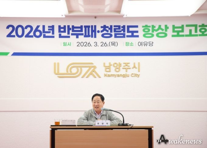 어웨이크뉴스 오경하 기자 | 남양주시는 26일 시청 여유당에서 ‘2026년 반부패·청렴도 향상 보고회’를 개최해 청렴도시 도약을 위한 추진 전략을 공유했다고 밝혔다.