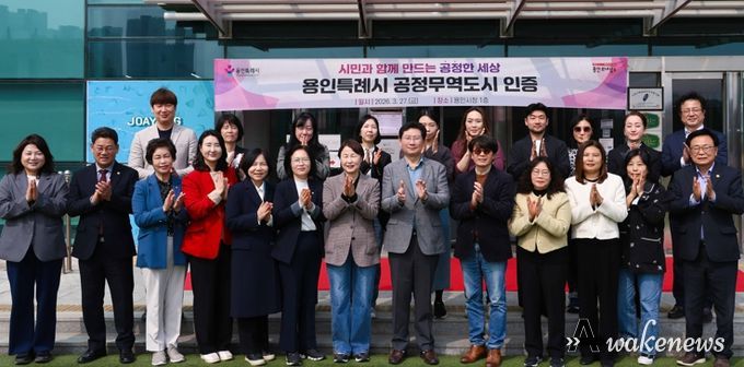 어웨이크뉴스 오경하 기자 | 용인특례시는 27일 시청 1층 3번 출구 앞에서 공정무역도시 인증 현판 제막식을 개최했다.