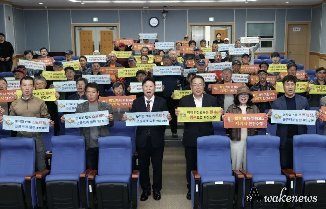 한편, 이날 행사에는 서태원 군수도 참석해 농민들과 함께 안전 실천을 다짐하고, “농업인들이 안심하고 생업에 종사할 수 있는 안전한 농업 환경 조성에 정책 역량을 집중하겠다”고 말했다.
