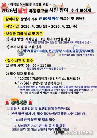 엄인봉 가로정비과장은 “불법광고물 수거보상제는 시민 자발적 참여로 행정력이 미치기 어려운 사각지대까지 세심하게 살필 수 있는 뜻깊은 사업”이라며 “시민 작은 실천이 모여 안전하고 쾌적한 도시 환경을 조성하는 밑거름이 되는 만큼 많은 관심과 동참을 바란다”고 밝혔다.