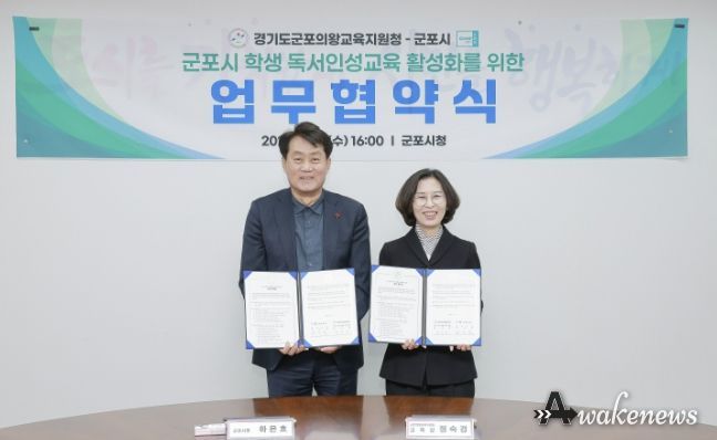 어웨이크뉴스 오경하 기자 | 군포시는 4월 8일 군포시청 1층 회의실에서 군포의왕교육지원청과 ‘지역독서 징검다리’ 구축을 위한 업무협약을 체결했다.