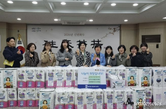 특히, 율천동 지킴이봉사단은 별도로 화장지 180롤(6세트)를 구입해 기부함으로써 이웃사랑 나눔실천에 더욱 힘을 실었다.