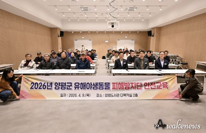 어웨이크뉴스 오경하 기자 | 양평군은 지난 9일 아프리카돼지열병(ASF) 확산 방지와 농작물 피해 예방을 위해 ‘2026년 양평군 유해야생동물 피해방지단 안전교육’을 실시했다.