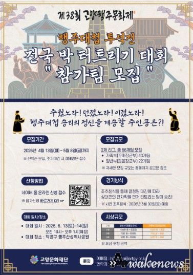어웨이크뉴스 오경하 기자 | 고양문화재단은 오는 6월 열릴 고양행주문화제의 대표 프로그램 중 하나인 행주대첩 투석전 ‘전국 박 터트리기 대회’의 참가팀을 오는 5월 8일까지 모집한다.