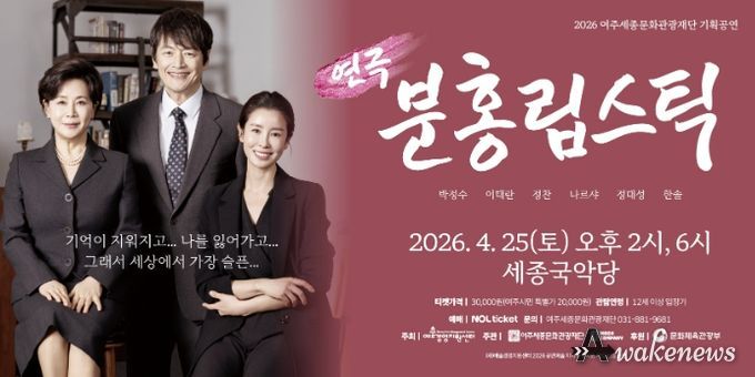 어웨이크뉴스 오경하 기자 | 여주세종문화관광재단이 오는 4월 25일, 예술경영지원센터의 공모사업인 '공연예술 지역 유통지원 사업'의 일환으로 베테랑 배우들이 참여한 창작 연극‘분홍립스틱’을 세종국악당에서 개최한다.