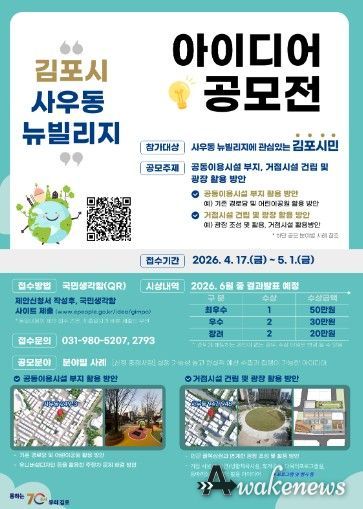 어웨이크뉴스 오경하 기자 | 김포시가 사우동 뉴빌리지 사업의 일환으로 원도심에 새로운 활력을 불어넣기 위해 ‘2026 사우동 뉴빌리지 시민 아이디어 공모전’을 개최한다고 밝혔다.