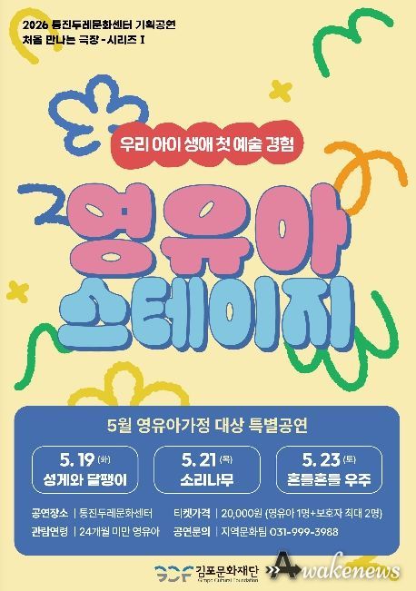 어웨이크뉴스 오경하 기자 | 김포문화재단은 오는 5월 가정의 달을 맞아 통진두레문화센터 특별 기획으로 24개월 미만 영유아를 위한 체험형 공연 시리즈 '처음 만나는 극장 - 영유아 스테이지'를 선보인다.
