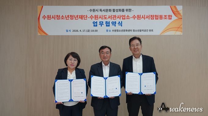 어웨이크뉴스 오경하 기자 | 수원시청소년청년재단은 수원시도서관사업소, 수원시서점협동조합과 4월 17일 수원청소년문화센터에서 수원시 독서문화 활성화를 위한 업무협약을 체결했다.