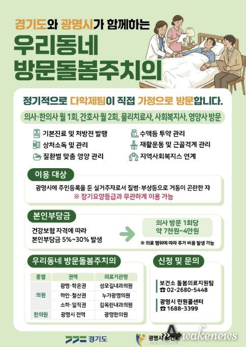 어웨이크뉴스 오경하 기자 | 장기요양등급이 없는 광명시민도 집에서 방문돌봄주치의 진료를 받을 수 있게 된다.