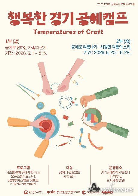 어웨이크뉴스 오경하 기자 | 한국도자재단이 오는 5월 1일부터 경기공예창작지원센터(여주) 일원에서 체험·전시·이벤트를 결합한 참여형 프로그램 ‘2026 행복한 경기 공예 캠프’를 개최한다.