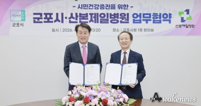 어웨이크뉴스 오경하 기자 | 군포시는 4월 20일 시청 1층 회의실에서 산본제일병원과 ‘시민 건강증진 및 의료서비스 질 향상을 위한 업무협약(MOU)’을 체결했다.