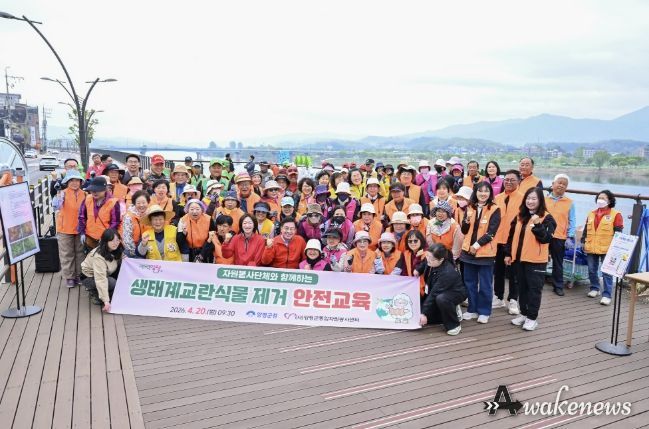 어웨이크뉴스 오경하 기자 | 양평군종합자원봉사센터는 지난 20일 오전 9시 양평남한강테라스 하부 산책로 일대에서 ‘2026년 자원봉사 리빙랩 3고 YP(줍고·잇고·지키고) 사업’의 일환으로 생태계 교란 식물 제거 활동을 실시했다.