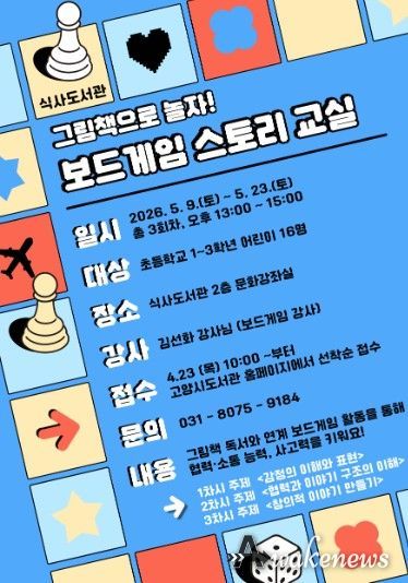 어웨이크뉴스 오경하 기자 | 고양특례시 식사도서관이 오는 5월 9일부터 공공도서관 독서문화 프로그램 ‘그림책으로 놀자! 보드게임 스토리 교실’을 운영한다.