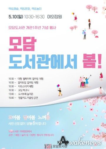 어웨이크뉴스 오경하 기자 | 김포 최대 규모 공공도서관인 모담도서관이 개관 1주년을 맞아 오는 5월 10일 ‘책과 문화·예술·놀이’가 어우러지는 행사를 연다. 이번 행사는 시민들에게 감사의 마음을 전하고 복합문화공간으로서의 역할을 수행하고자 마련된 것으로, 사전예약 없이 도서관 방문자 누구나 참여 가능하다.