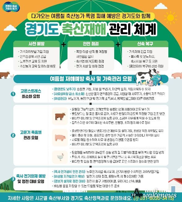 어웨이크뉴스 오경하 기자 | 경기도가 올여름 무더위로부터 축산농가를 보호하기 위해 예산 지원과 현장점검을 아우르는 전방위적 대응에 나섰다.