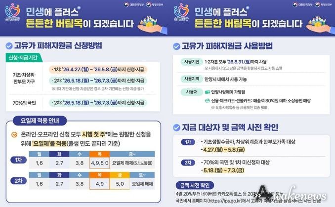 4월 27일~5월 8일 취약계층 우선 지급…5월 1일 근로자의 날 온라인 신청만 가능
