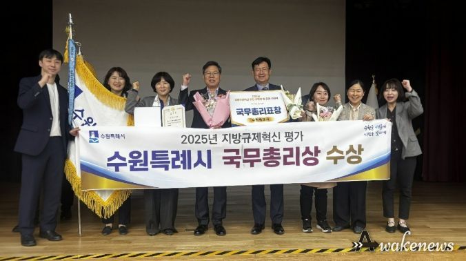 어웨이크뉴스 오경하 기자 | 수원특례시가 행정안전부 주관 ‘2025년도 지방규제개혁 유공’ 평가에서 규제개혁 성과를 인정받아 국무총리 기관 표창을 받았다. 시상식은 22일 정부세종청사에서 열렸다. 수원시는 개인 표창도 받았다.